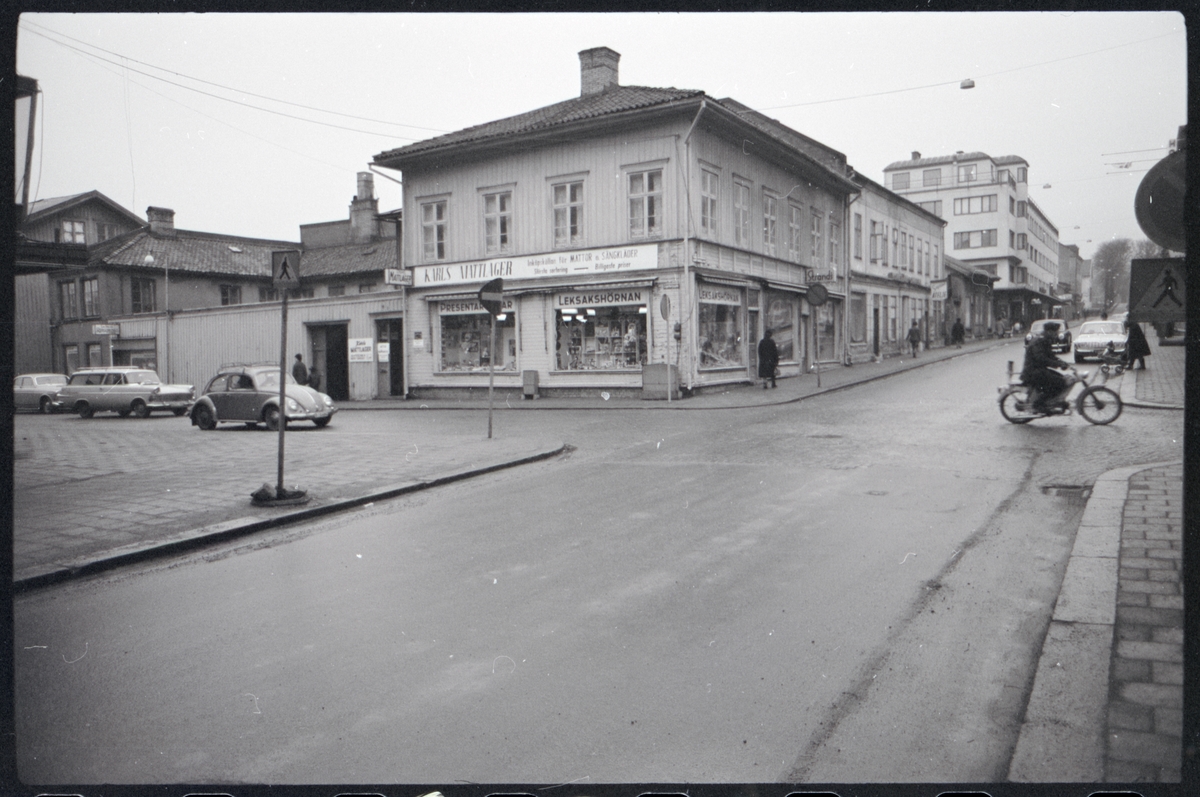 Text till bilden: "Lagerbergsgatan-N:a Drottningsgatan. Leksakshörnan. Karls mattlager. Sven Petterssons rör". Album 2 bild 87.