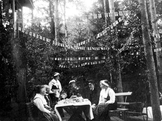 Enligt noteringar: "Lilla mors födelsedag 7 Aug 1914. Kaffebordet i Fagerfall."
