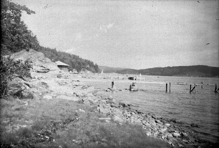 Enligt Bengt Lundins noteringar: "Lyckorna. Varvsbadet klippor o badhustak. Foto 1722".