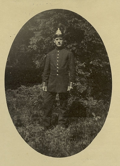 Enligt Bengt Lundins noteringar: "E S i vaktmundering, poserar framför träd".