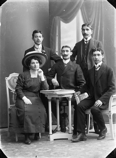 Enligt tidigare noteringar: "Uddevalla. Ateljefoto, grupp 4 män och en dam."