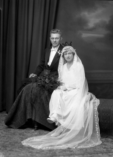 Uppgift enligt fotografen: "Uddevalla. Ateljéfoto. Brudpar. Erik Hermansson."