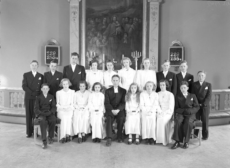Uppgift enligt fotografen: "Uddevalla. Konfirmander. Pastor Bergman."