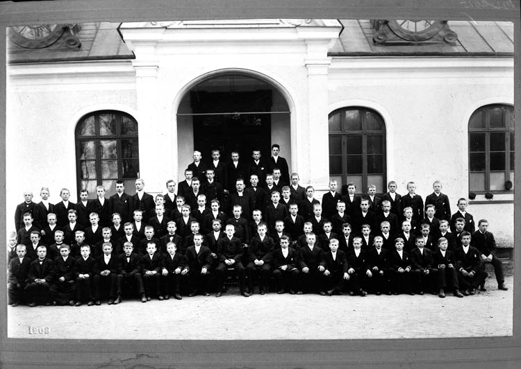 Uppgift enligt fotografen: "Uddevalla. Stor grupp pojkar."