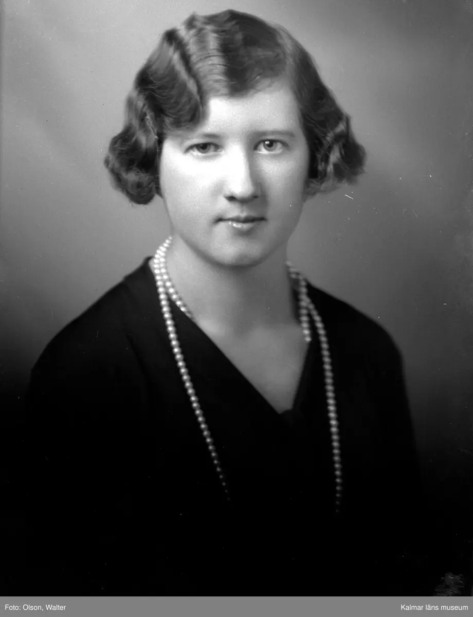 Ateljébild på en kvinna i klänning och pärlhalsband. Beställare av bilden: Fröken Ester Gustavsson, Sporsjö, Förlösa.