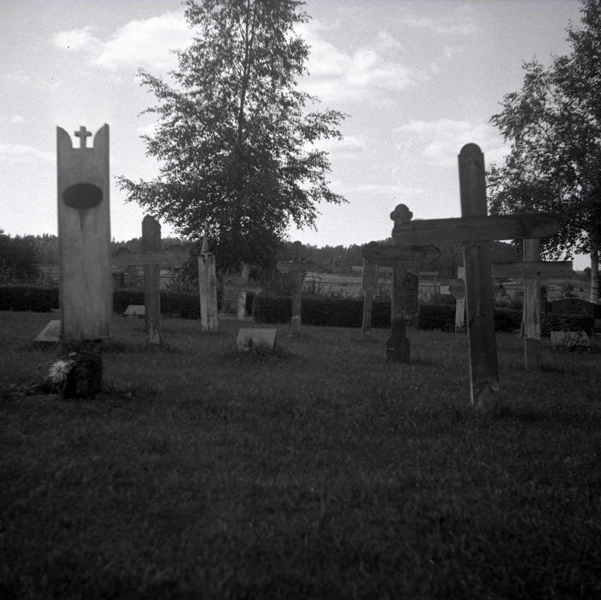 Gravvårdar av trä i Venas kyrkogård.
