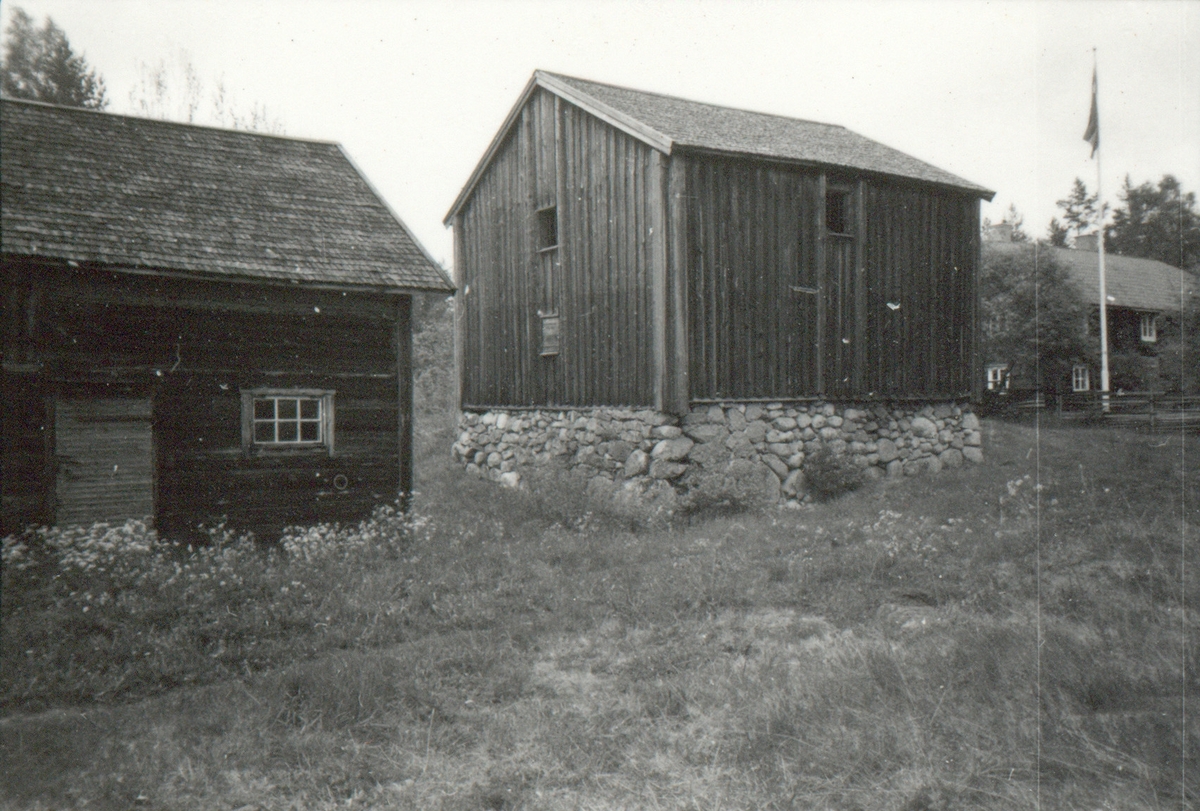 Ösjöfors handpappersbruk. Ladugård/magasin och mangårdsbyggnad från söder.
