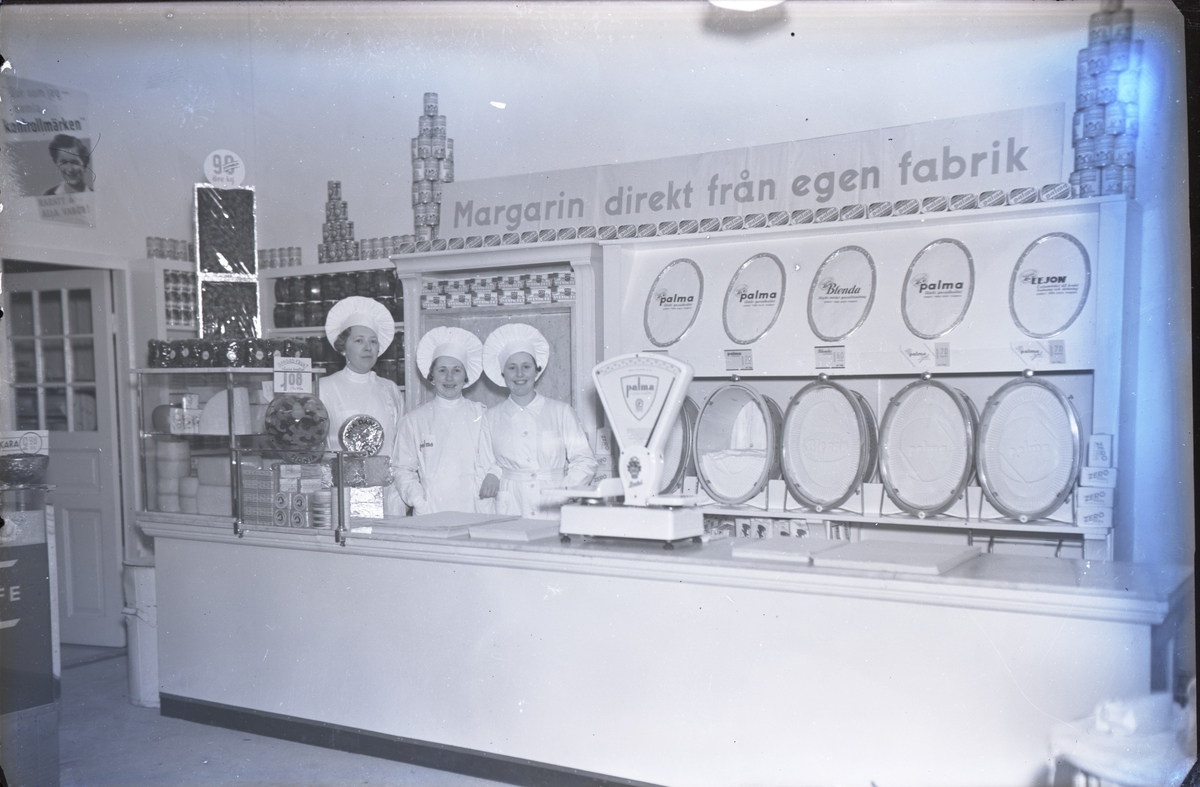 Interiör från en livsmedelaffär med personal.