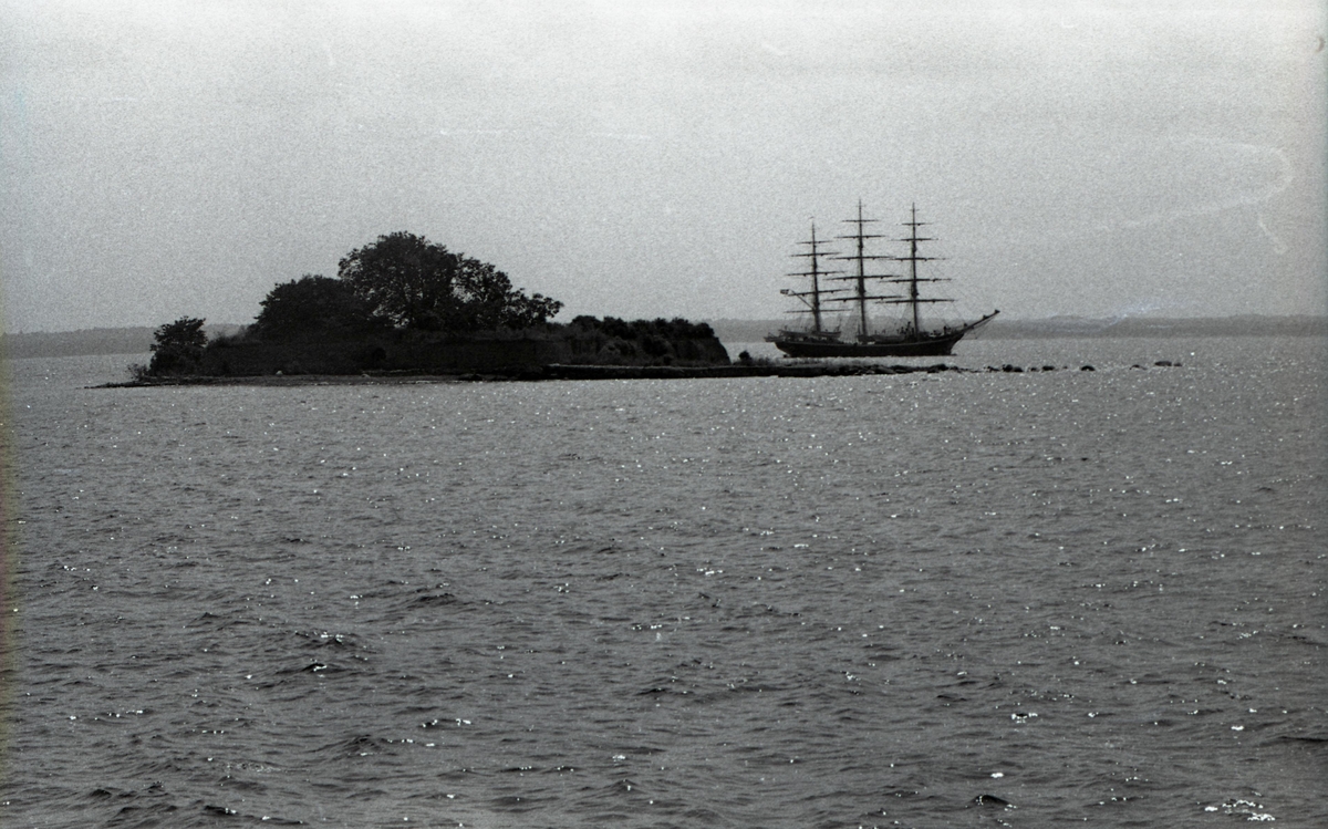 Det danska skolskeppet Georg Stage, världens minsta fullriggare, passerar Grimskär, Kalmar.