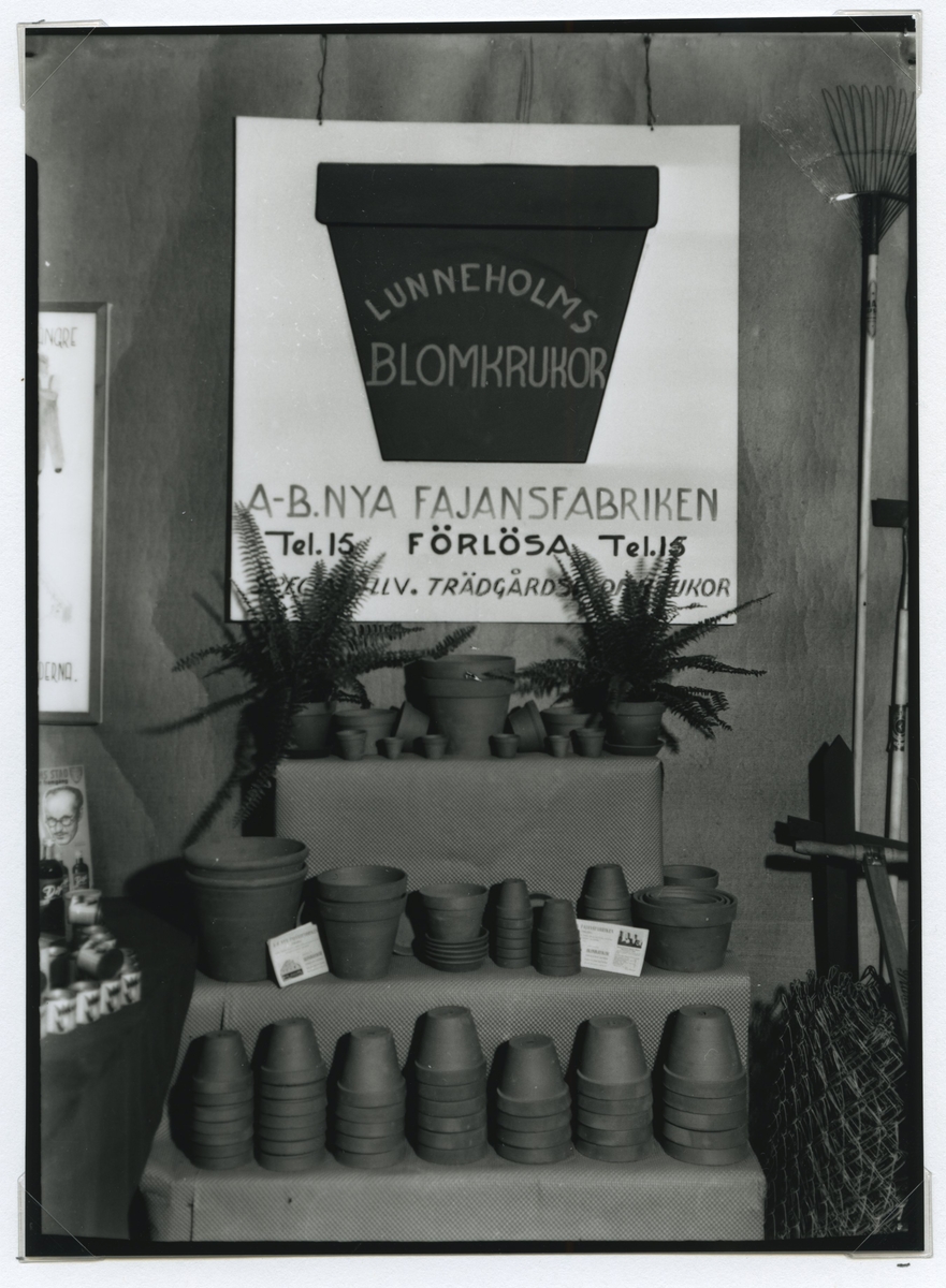 Reklam för blomkrukor. AB Nya Fajansfabriken i Förlösa.