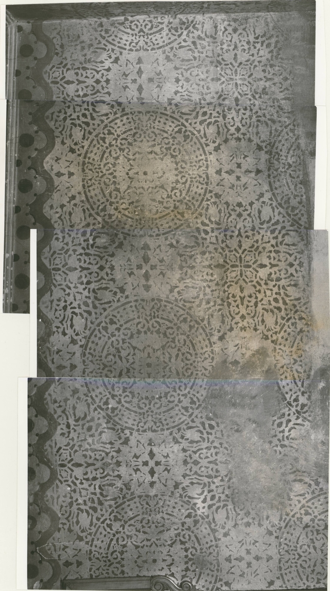 Detalj av av den dekorerade västra väggen norr om dörren i Slottskyrkan.