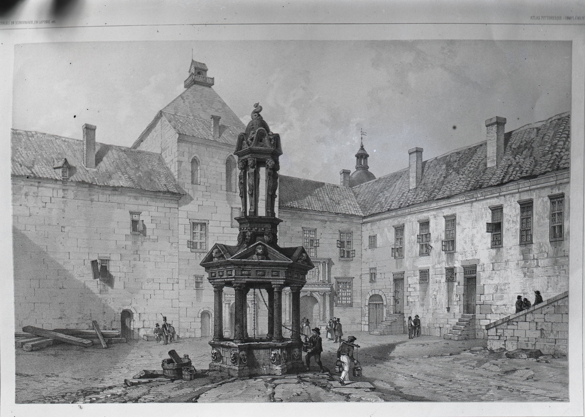Brunnsöverbyggnad från år 1578. Renässansborggård.