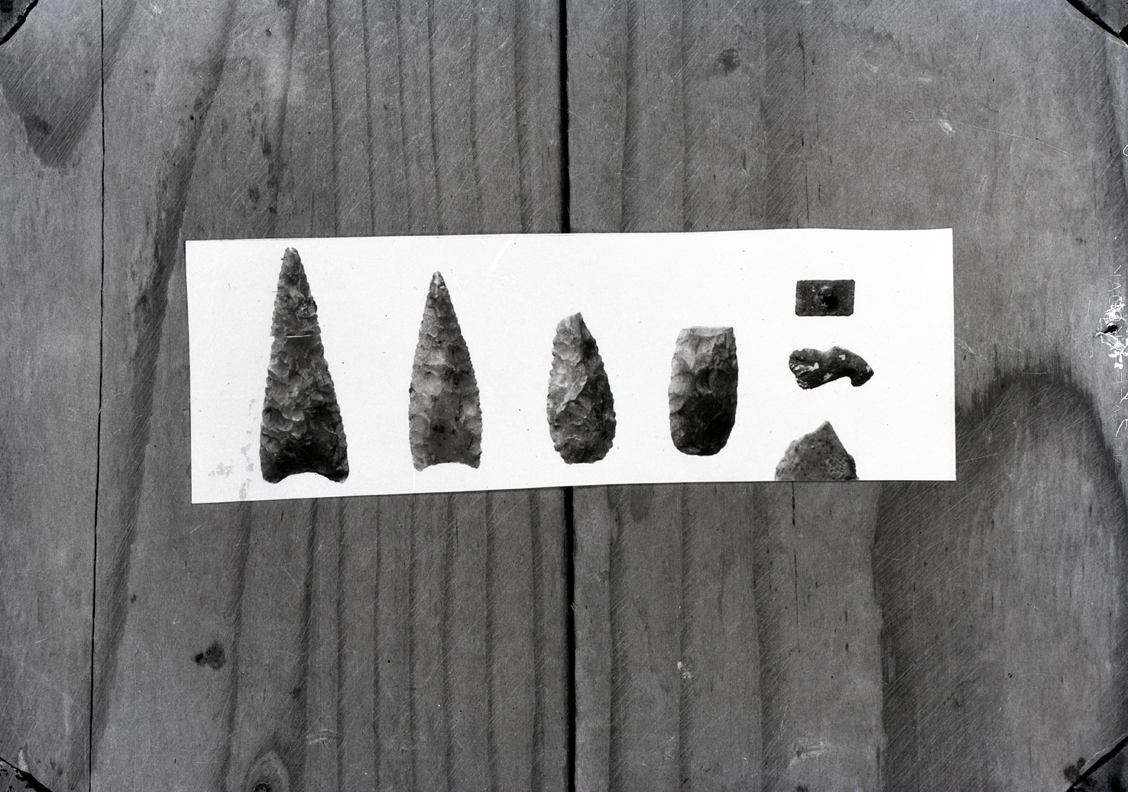 Spjutspetsar av flinta. Troligen från stenåldern, men flinta användes in i bronsåldern.