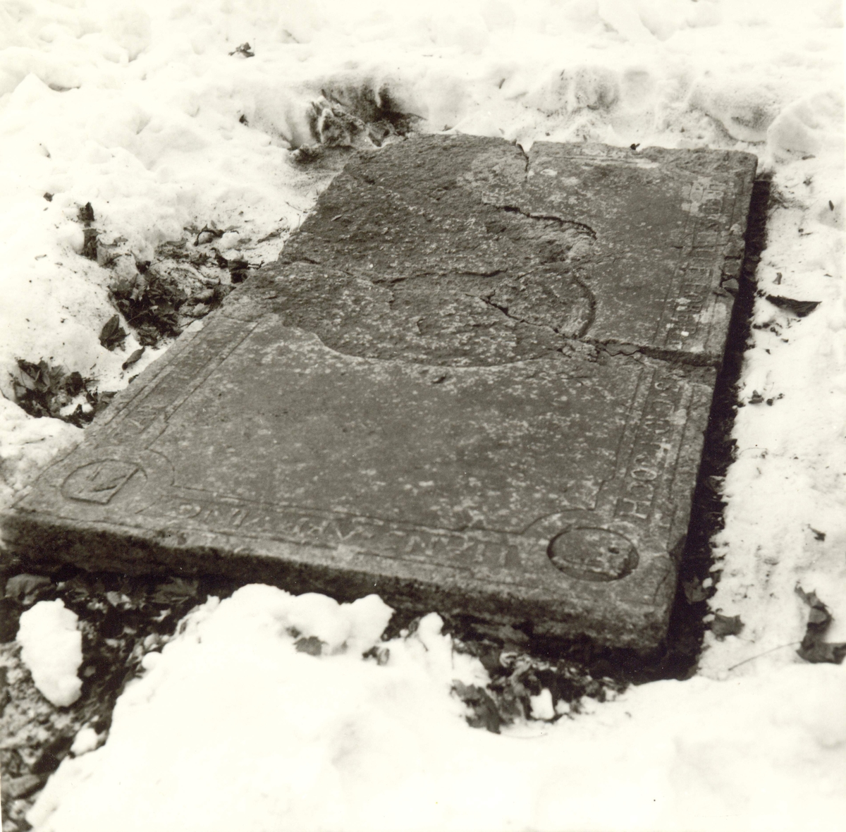 Liggande gravhäll på gamla kyrkogården i Kalmar.