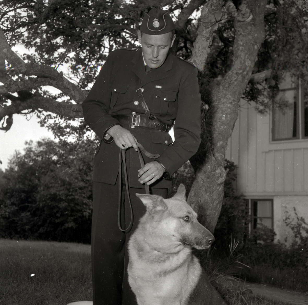 Brand i Norra Möckleby, Hagby. Polis med sökhund.