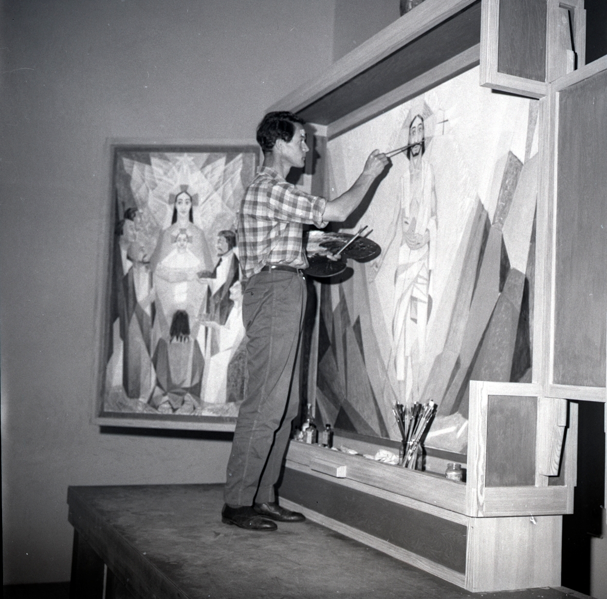Konstnären Hans Fagerström färdigställer triptyken i Persnäs kyrka.