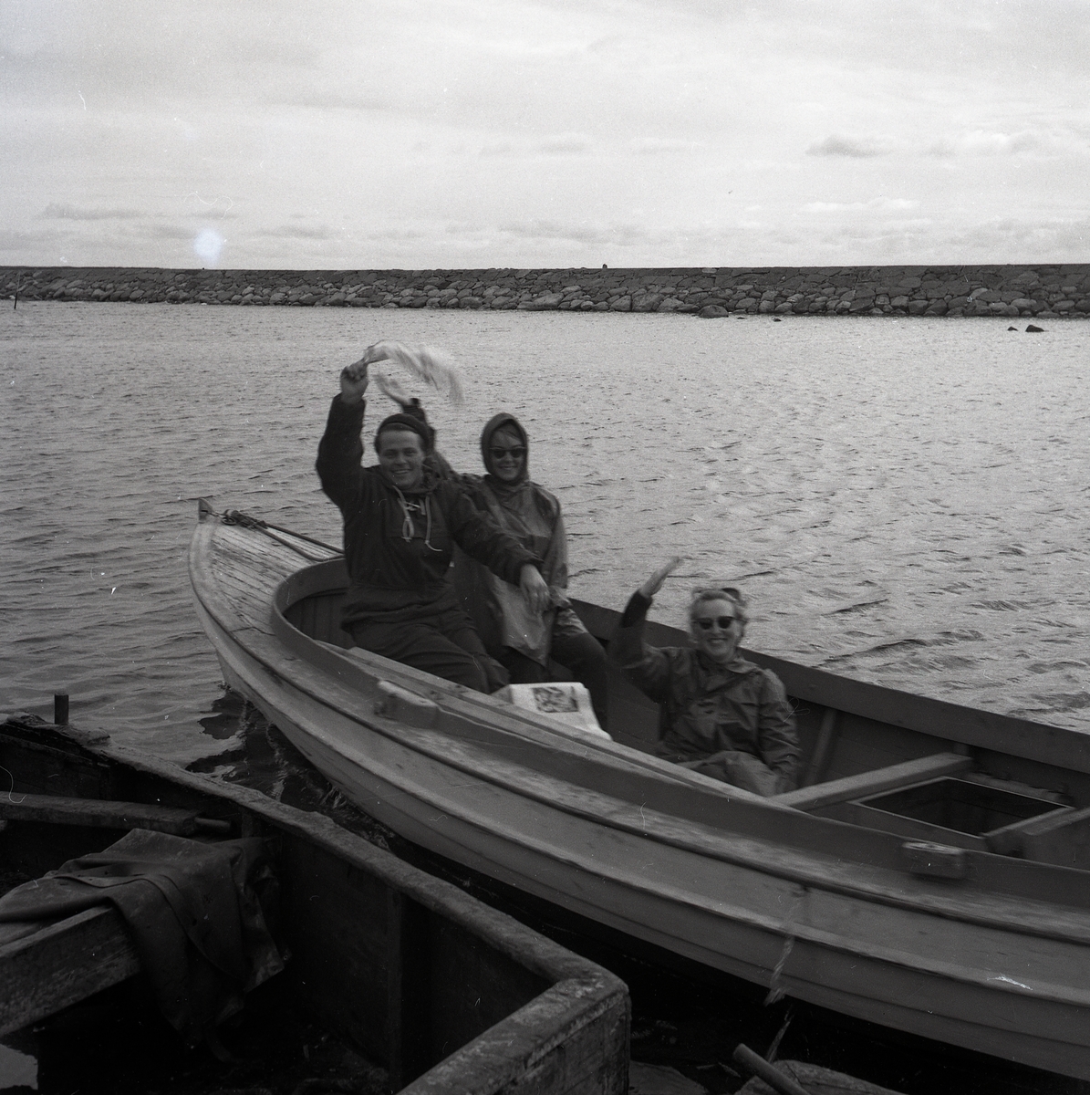 Dr. Ragnhild Boström och Ulf Erik Hagberg i en båt i Kårehamn, juli 1962.