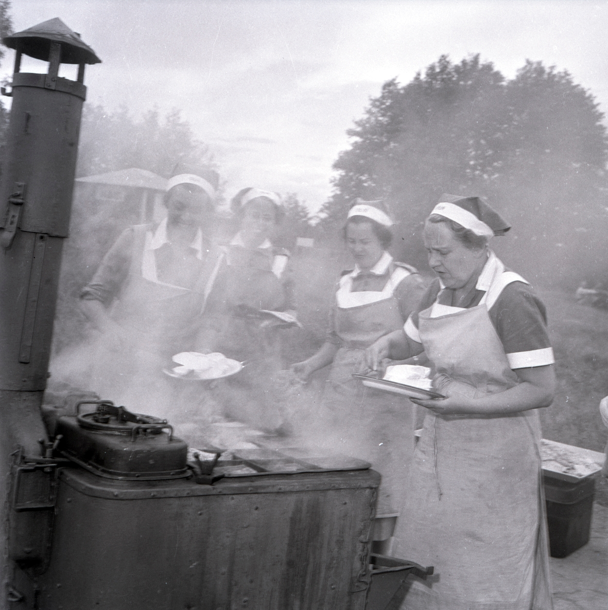 Militär övning i Köpingsvik. Lottor vid fältköket.