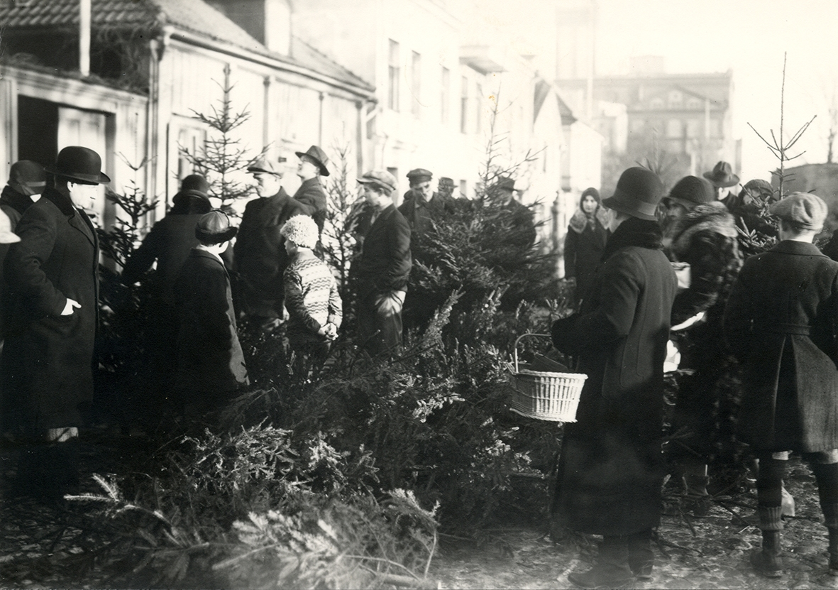 Julgransförsäljning på Lilla Torget, Kalmar 1925-29.