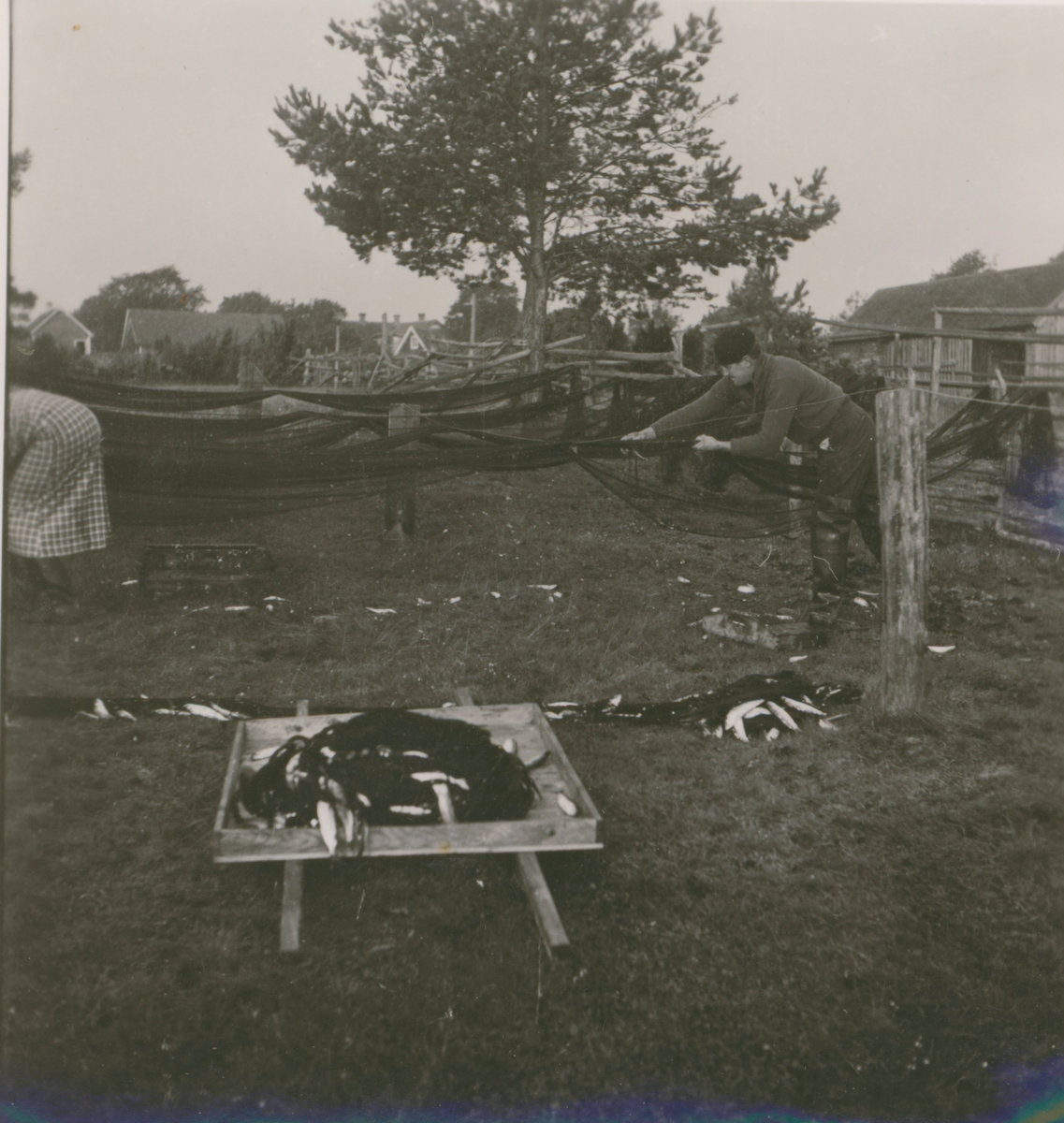 Fiskfångst vid ett fiskeläge i Svartvik.