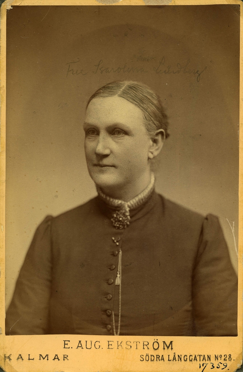 Lundberg Karolina maka till Lundberg J. P. Smedmästare. Porträttet gåva efter Lundbergs 1939 avlidna dotter Alma Lundberg.