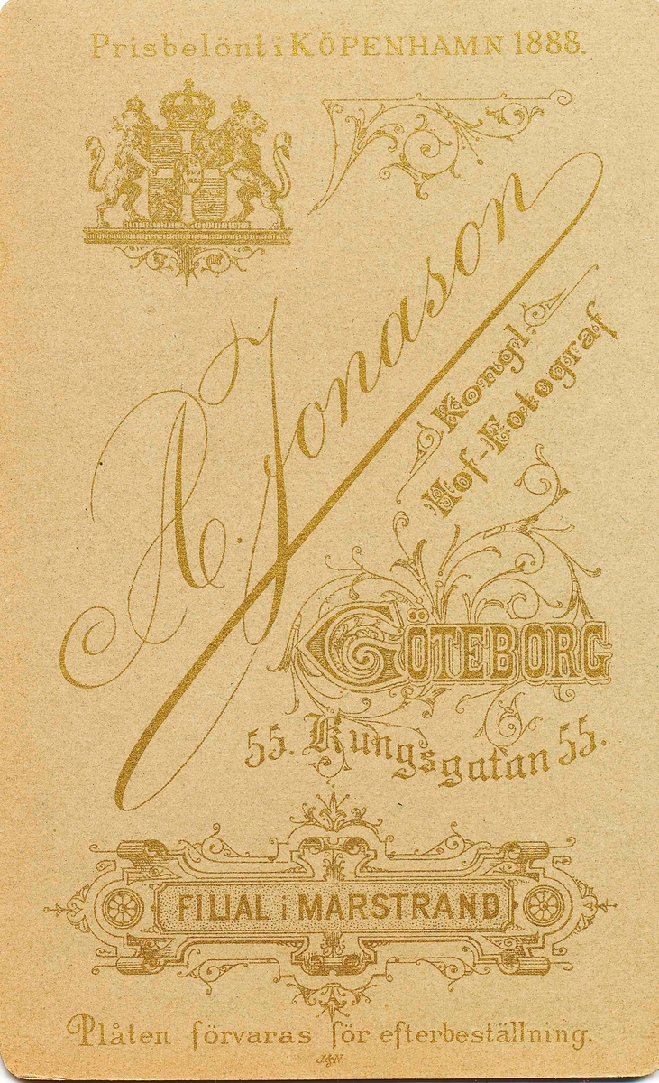 Baksidan av fotot på läroverksadjunkt Helgo Klefbeck, Göteborg.