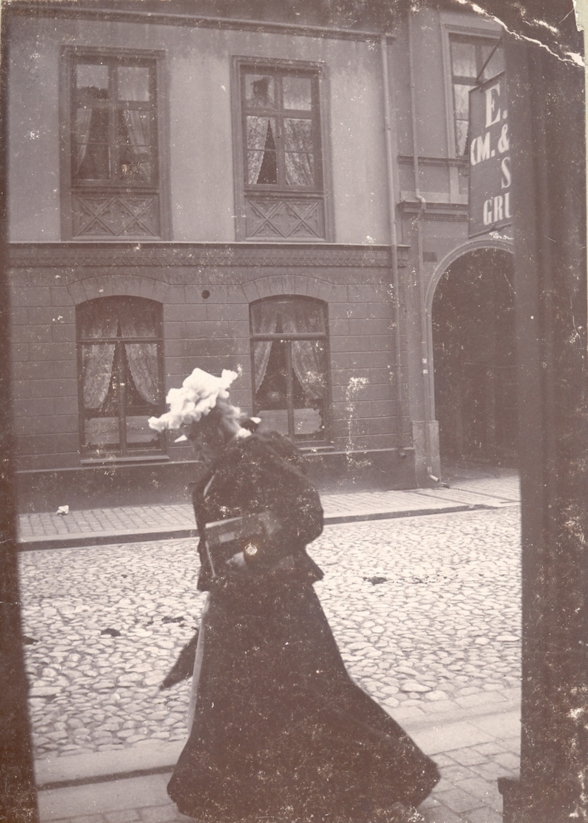En kvinna på en trottoar till Storgatan i Kalmar.