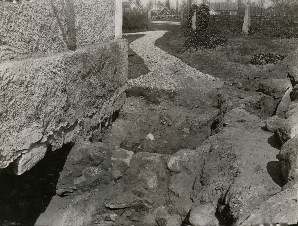 Böda kyrka. Gravar utanför sakristians östvägg, påträffade vid grävning för värmekammare 1931.