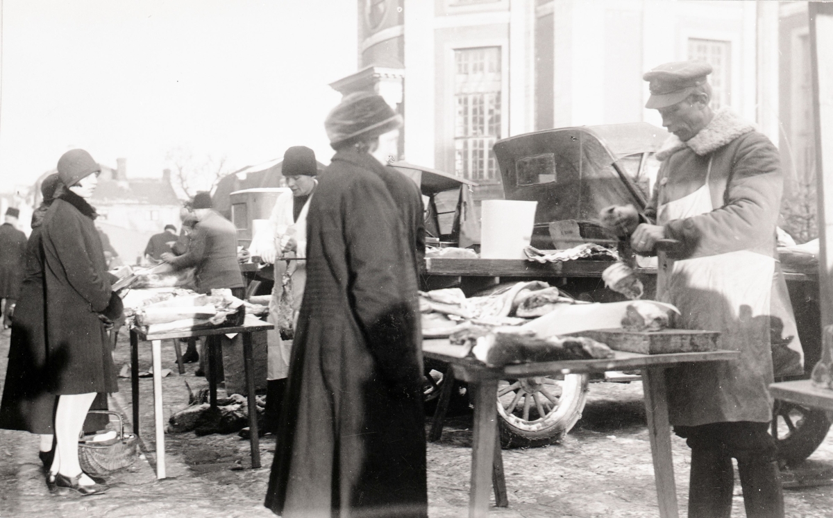 Karin Cras, född 15/5 1892, köper fläsk på torget.
