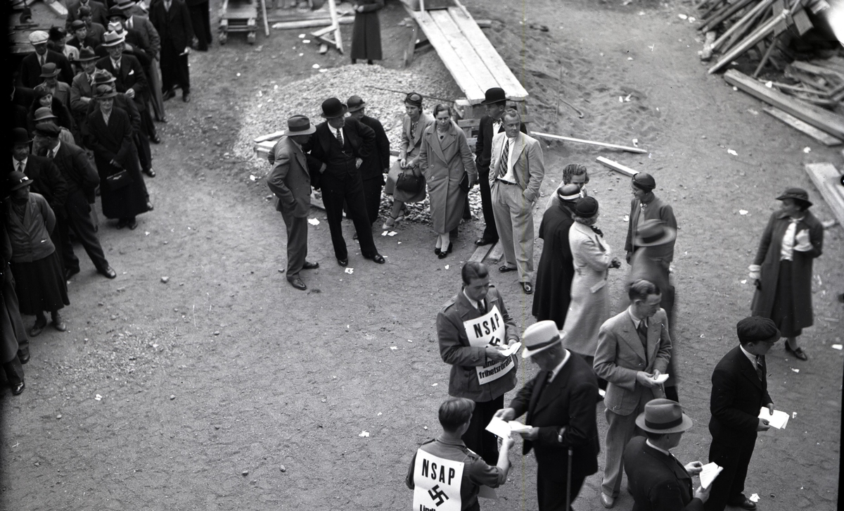 Valdagen 1936. Nazister delar ut valsedlar.