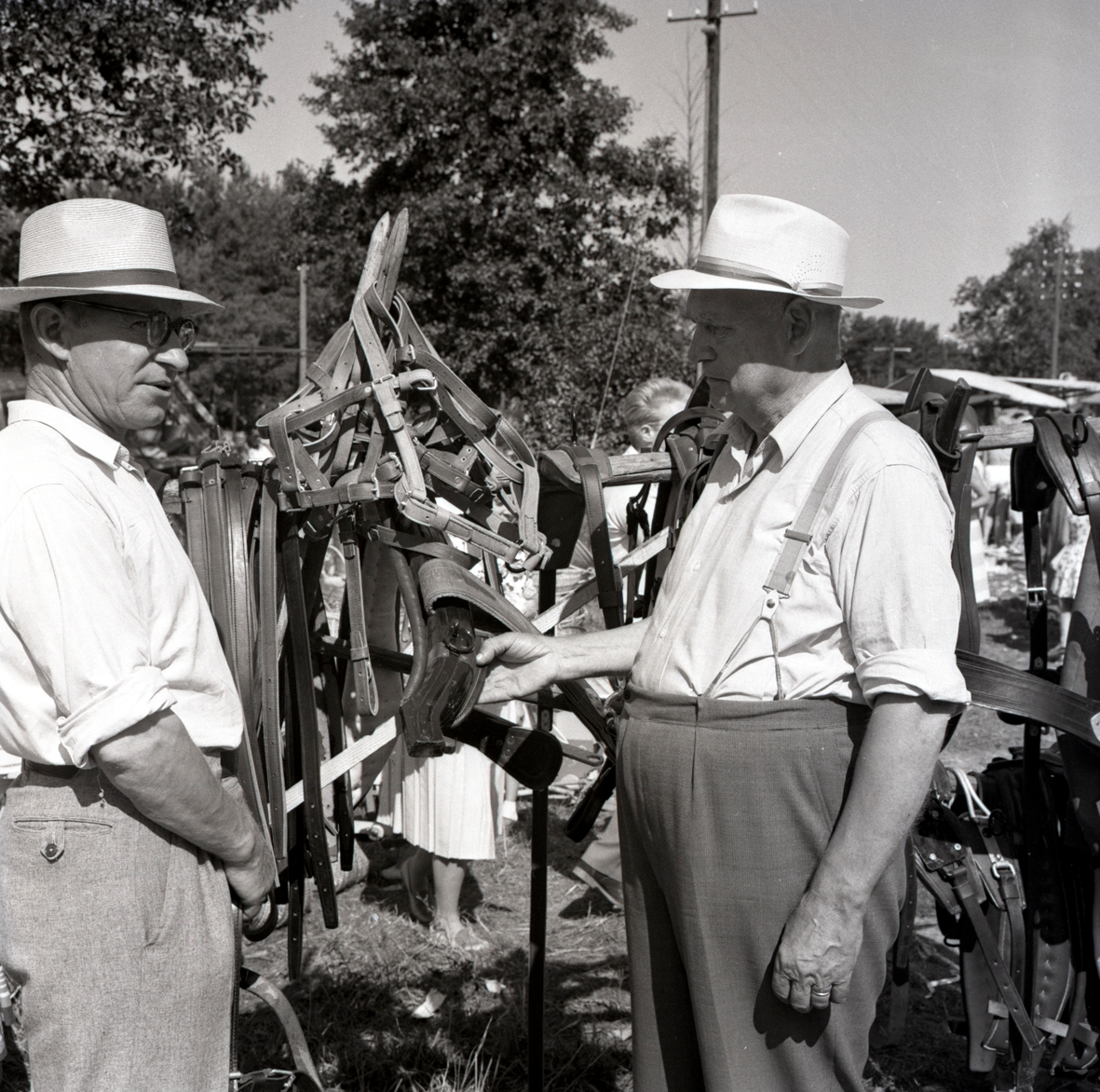 Sadelmakare säljer seldon på marknaden i Löttorp.