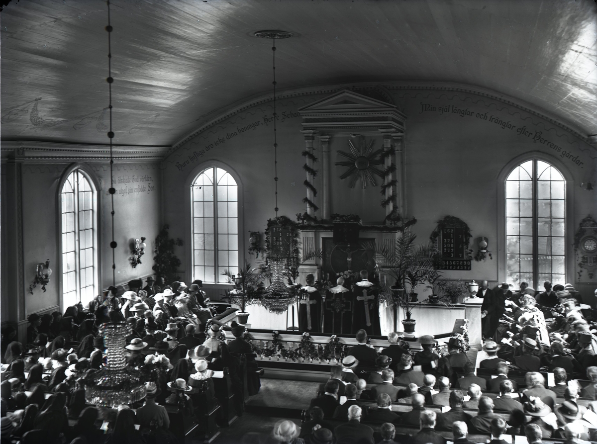 Interiör Karlslunda kyrka, 100-årsfesten, pastor Berggren.