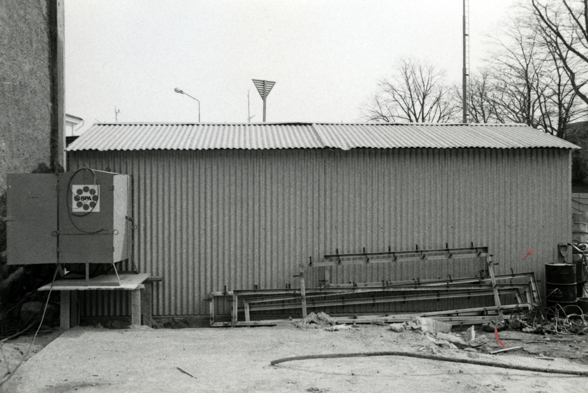 Inför utbyggnaden av hotell Witt. Arbetsbod.