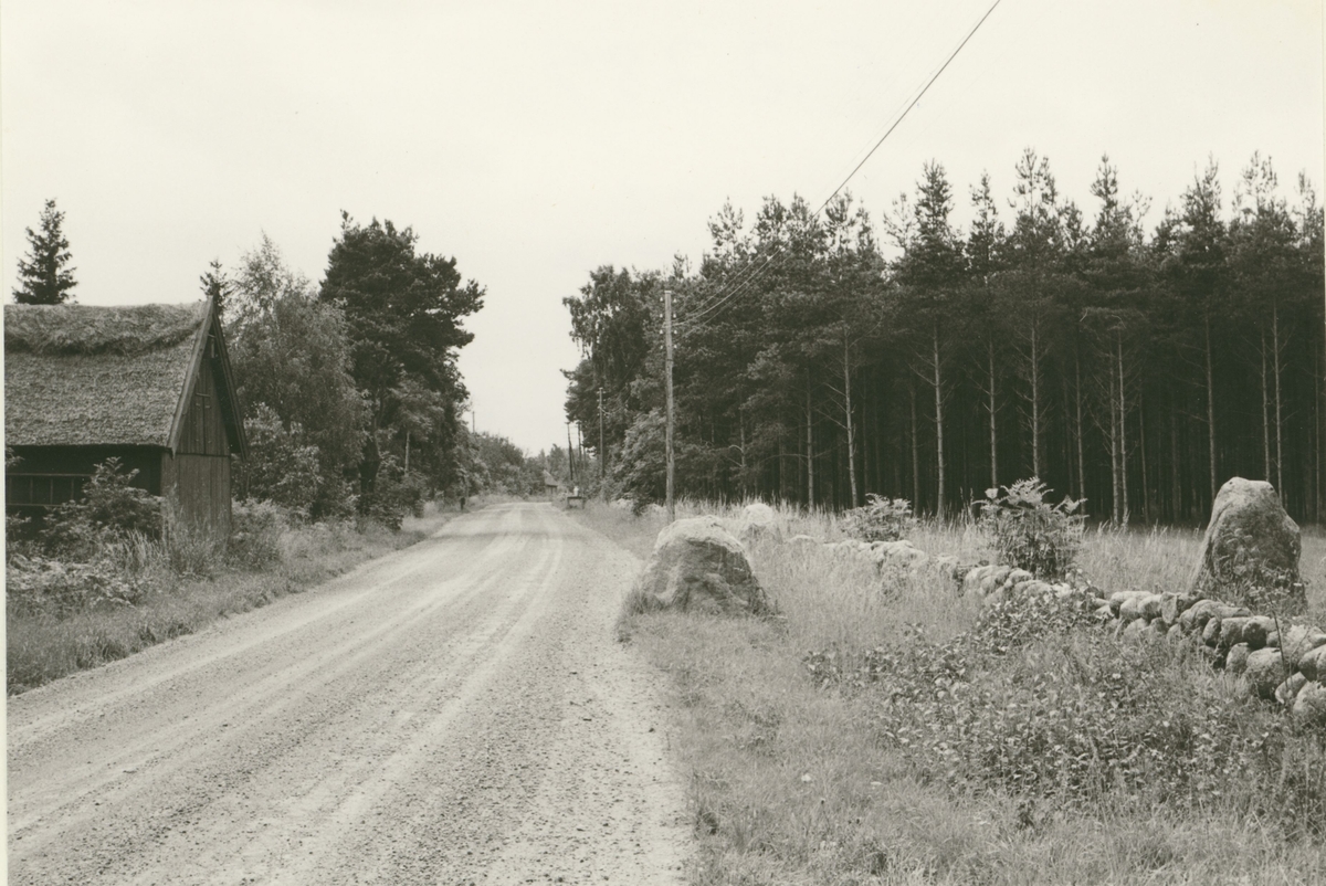 Gravfält i Gärdslösa från järnåldern. Resta stenar vid en väg.