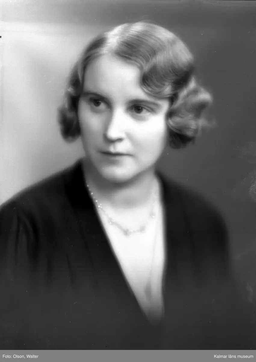 Ateljébild på en kvinna. Enligt Walter Olsons journal är bilden beställd av kapten S Hjort ifrån Frejagatan 13 i Kalmar.