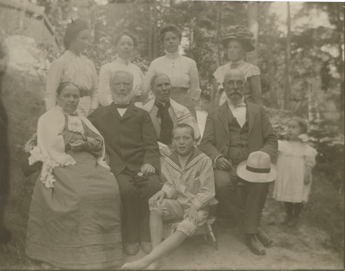 Grupporträtt av medlemmar ur den Fornanderska släkten. På bilden: