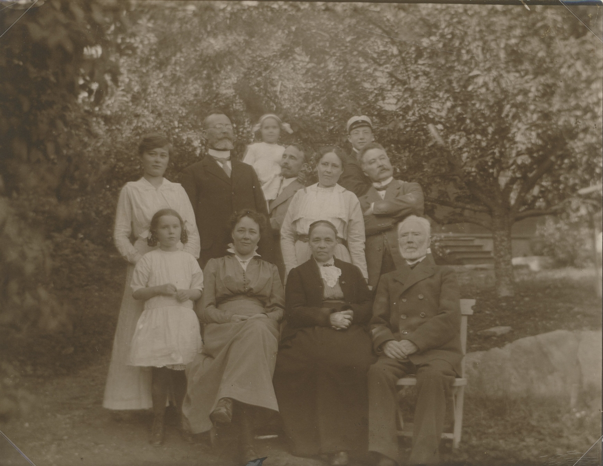 Från vänster i främre raden: Karine Möllerberg, Gerda Nordvik f. Ideström, Anna Ideström f. Fornander och Gustaf Leonard Ideström.
