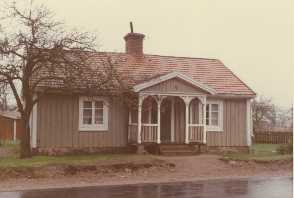 Bostadshus med liten veranda. Bilderna är tagna inom ramen för Kalmar kommuns inventering av stadens bebyggelse 1974 och skänkta till länsmuseet.