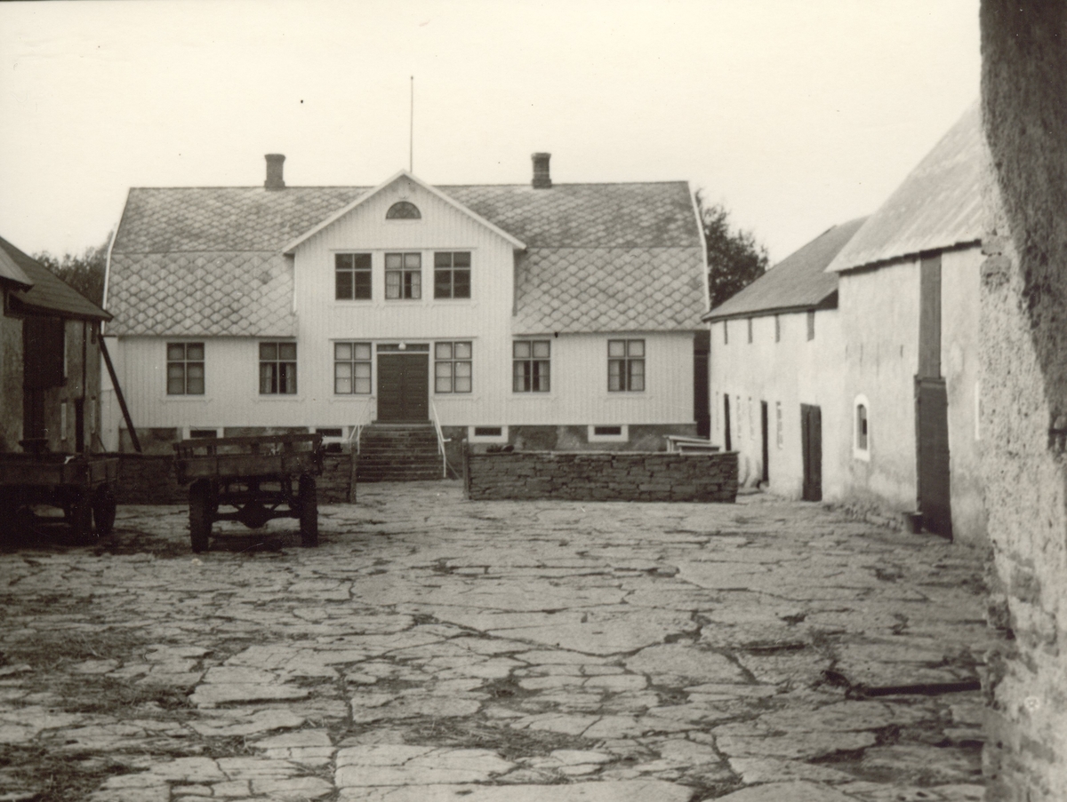 Typisk öländsk gårdsplan, med manbyggnaden längst från vägen och en mur som skiljer mangård från fägård.