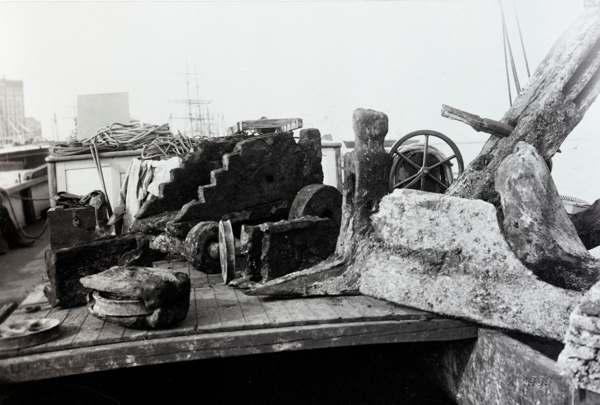 Bärgning av kanonerna från "Linjeskeppet Enigheden" som sjönk 1679. Bärgades av dykningsbolaget Rex år 1909.
