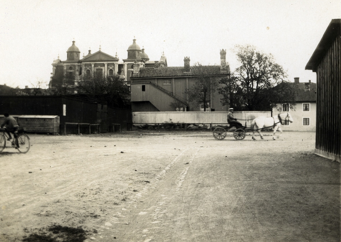 Motiv från Norra Vallgatan i kvarteret Muren innan Nils Carlgrens s k pensionärsbyggnader uppfördes.