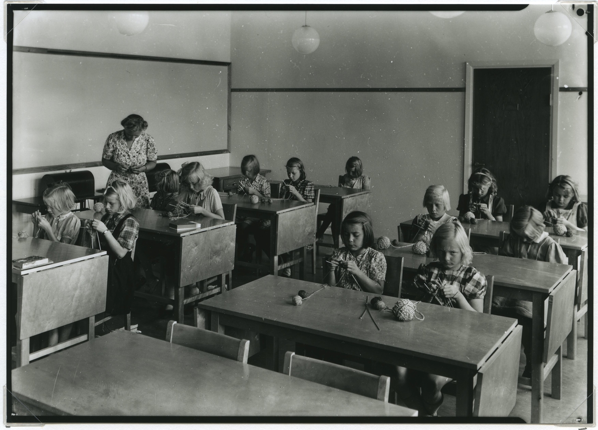 Undervisning på Lindöskolan första terminen skolan var i bruk.