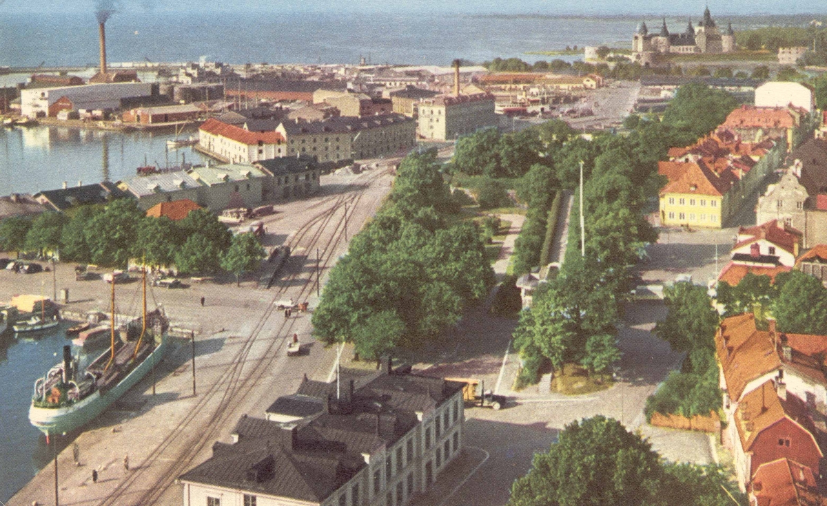 Vykort med utsikt över Skeppsbrogatan från ångkvarnen.