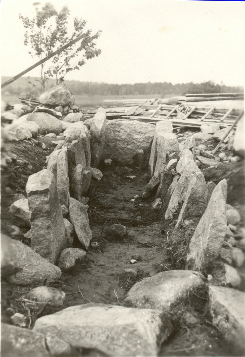 Hällkista i röse, utgrävt och restaurerat 1931 genom doktor Harald Hansson.