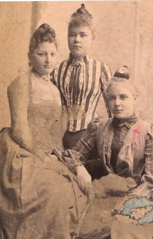Damen till höger: Dotter: Fru Sigrid Sellgren, född Jeansson. Damen i mitten: fröken Nanna Olsbon Kalmar, bostad Norra Långgatan No 19. Damen till vänster är obekant.