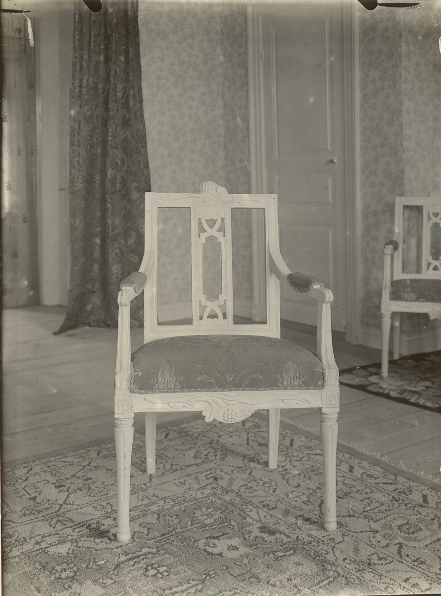 Sengustavianska vitmålade och osignerade stolar på Gränsö slott. Kommer ursprungligen från Nääs i Västergötland.