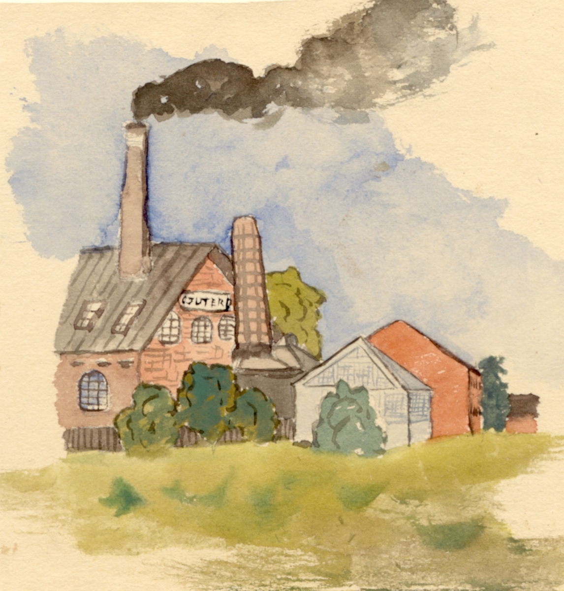 Manilla gjuteri 1893. Akvarell av skolynglingen J. Söderberg, kopia av Edvin Lindholm 1893.