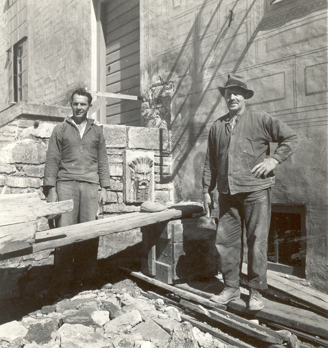 Restaureringsarbeten på slottet 1936. På bilden syns ansiktet som sägs föreställa Christer Some.