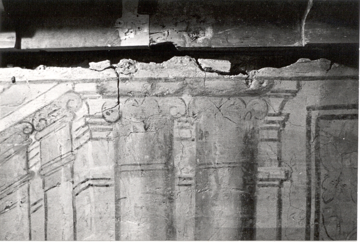 Sprickbildning i putsen under taket i Grå salen på Kalmar slott.