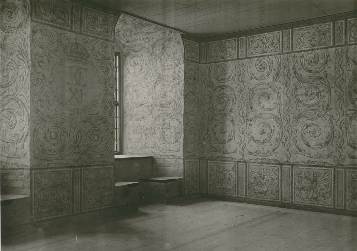 Stora salen åt borggården i Ståthållarevåningen. Barockdekorationer, daterade på väggen mellan fönstren med årtalet 1692. Målningen restaurerad 1928-1930.